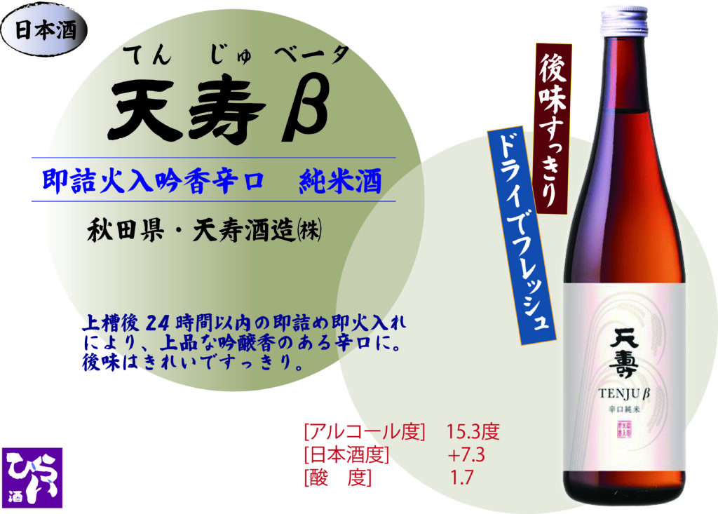 天寿β 即詰火入吟香辛口 純米酒 ◎姫路で日本酒・地酒・獺祭・あらごし梅酒・獺祭焼酎・まんさくの花・ビワミンを買うなら地酒専門の、姫路しののめ『酒ひらい』 by株式会社平井商店