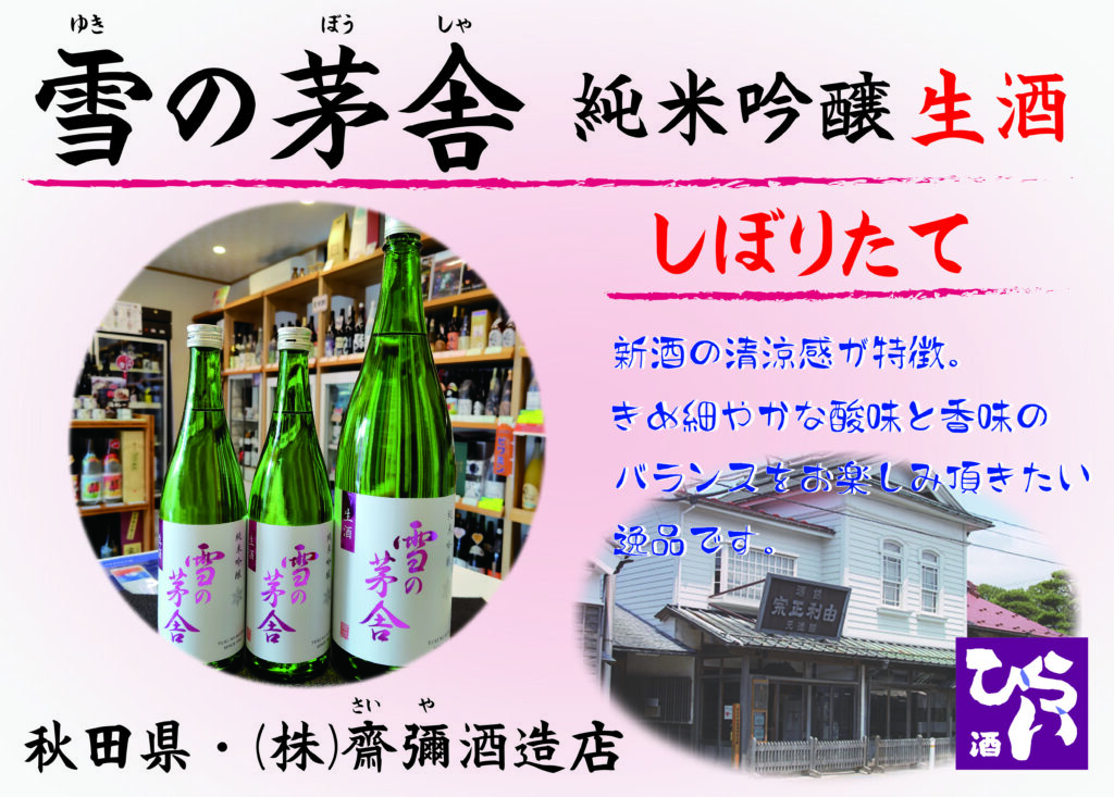 雪の茅舎 純米吟醸 生酒 しぼりたて ◎姫路で日本酒・地酒・獺祭・あらごし梅酒・獺祭焼酎・まんさくの花・ビワミンを買うなら地酒専門の、姫路しののめ『酒ひらい』 by株式会社平井商店