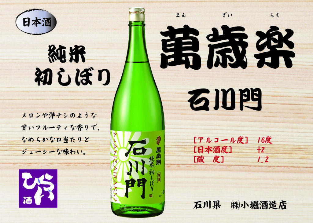 萬歳楽 純米 初しぼり 石川門 ◎姫路で日本酒・地酒・獺祭・あらごし梅酒・獺祭焼酎・まんさくの花・ビワミンを買うなら地酒専門の、姫路しののめ『酒ひらい』 by株式会社平井商店