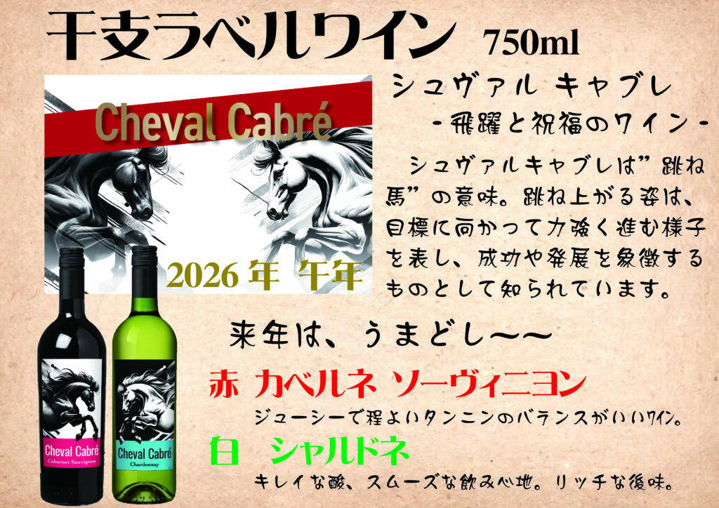干支ラベルワイン シュヴァルキャブレ 2026  ◎姫路で日本酒・地酒・獺祭・あらごし梅酒・獺祭焼酎・まんさくの花・ビワミンを買うなら地酒専門の、姫路しののめ『酒ひらい』 by株式会社平井商店