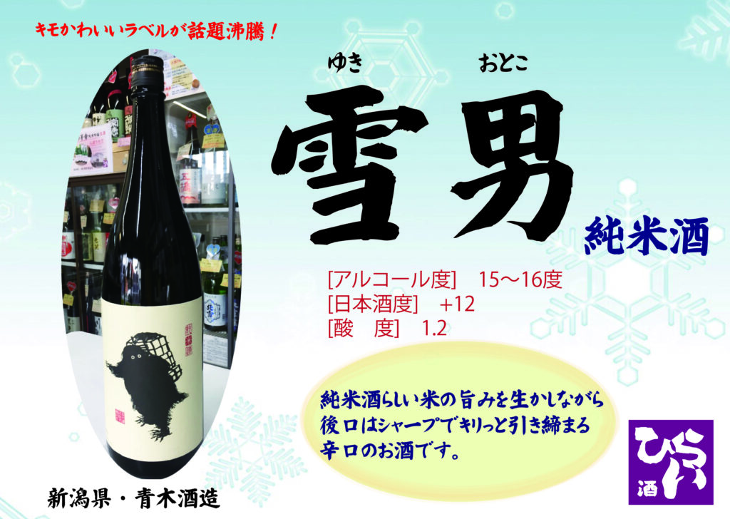 雪男 純米酒 ◎姫路で日本酒・地酒・獺祭・あらごし梅酒・獺祭焼酎・まんさくの花・ビワミンを買うなら地酒専門の、姫路しののめ『酒ひらい』 by株式会社平井商店