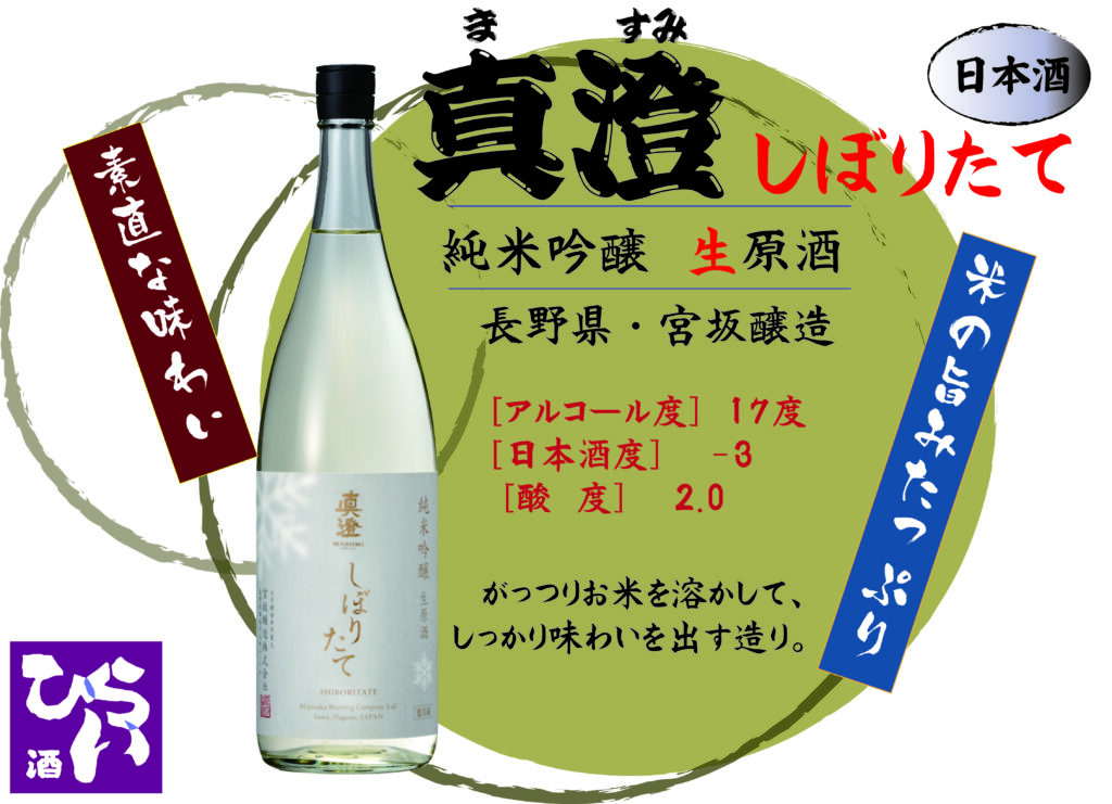 真澄 純米吟醸 生原酒 しぼりたて ◎姫路で日本酒・地酒・獺祭・あらごし梅酒・獺祭焼酎・まんさくの花・ビワミンを買うなら地酒専門の、姫路しののめ『酒ひらい』 by株式会社平井商店