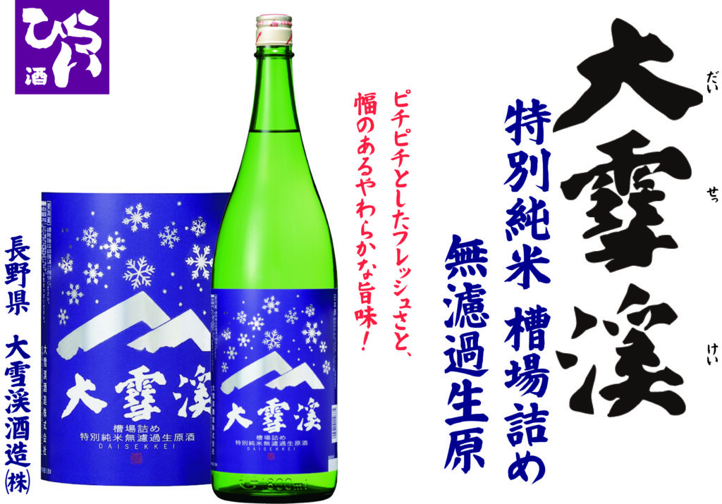 大雪渓 槽場詰め 特別純米 無濾過生原酒 しぼりたて ◎姫路で日本酒・地酒・獺祭・あらごし梅酒・獺祭焼酎・まんさくの花・ビワミンを買うなら地酒専門の、姫路しののめ『酒ひらい』 by株式会社平井商店