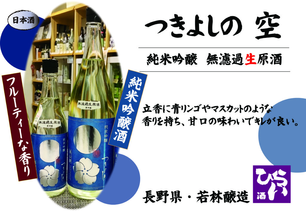 つきよしの空 純米吟醸 無濾過生原酒 ◎姫路で日本酒・地酒・獺祭・あらごし梅酒・獺祭焼酎・まんさくの花・ビワミンを買うなら地酒専門の、姫路しののめ『酒ひらい』 by株式会社平井商店