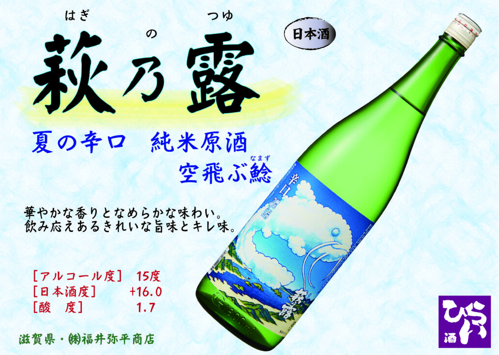 萩乃露 夏の辛口 純米原酒 空飛ぶ鯰 ◎姫路で日本酒・地酒・獺祭・あらごし梅酒・獺祭焼酎・まんさくの花・ビワミンを買うなら地酒専門の、姫路しののめ『酒ひらい』 by株式会社平井商店
