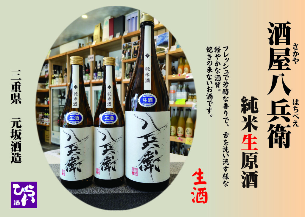 酒屋八兵衛 純米生原酒 ◎姫路で日本酒・地酒・獺祭・あらごし梅酒・獺祭焼酎・まんさくの花・ビワミンを買うなら地酒専門の、姫路しののめ『酒ひらい』 by株式会社平井商店