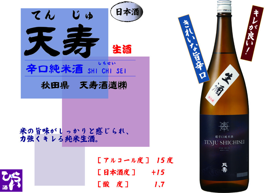 天寿 辛口 純米生酒 SHI・CHI・SEI ◎姫路で日本酒・地酒・獺祭・あらごし梅酒・獺祭焼酎・まんさくの花・ビワミンを買うなら地酒専門の、姫路しののめ『酒ひらい』 by株式会社平井商店
