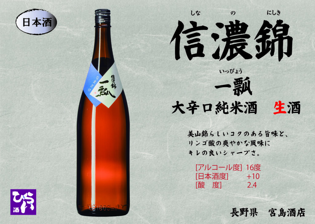 信濃錦 大辛口 純米酒 生酒 一瓢 ◎姫路で日本酒・地酒・獺祭・あらごし梅酒・獺祭焼酎・まんさくの花・ビワミンを買うなら地酒専門の、姫路しののめ『酒ひらい』 by株式会社平井商店