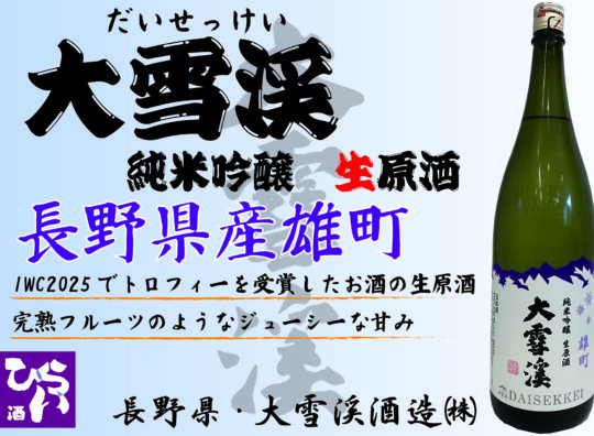 大雪渓 長野県産雄町 純米吟醸生原酒 ◎姫路で日本酒・地酒・獺祭・あ…